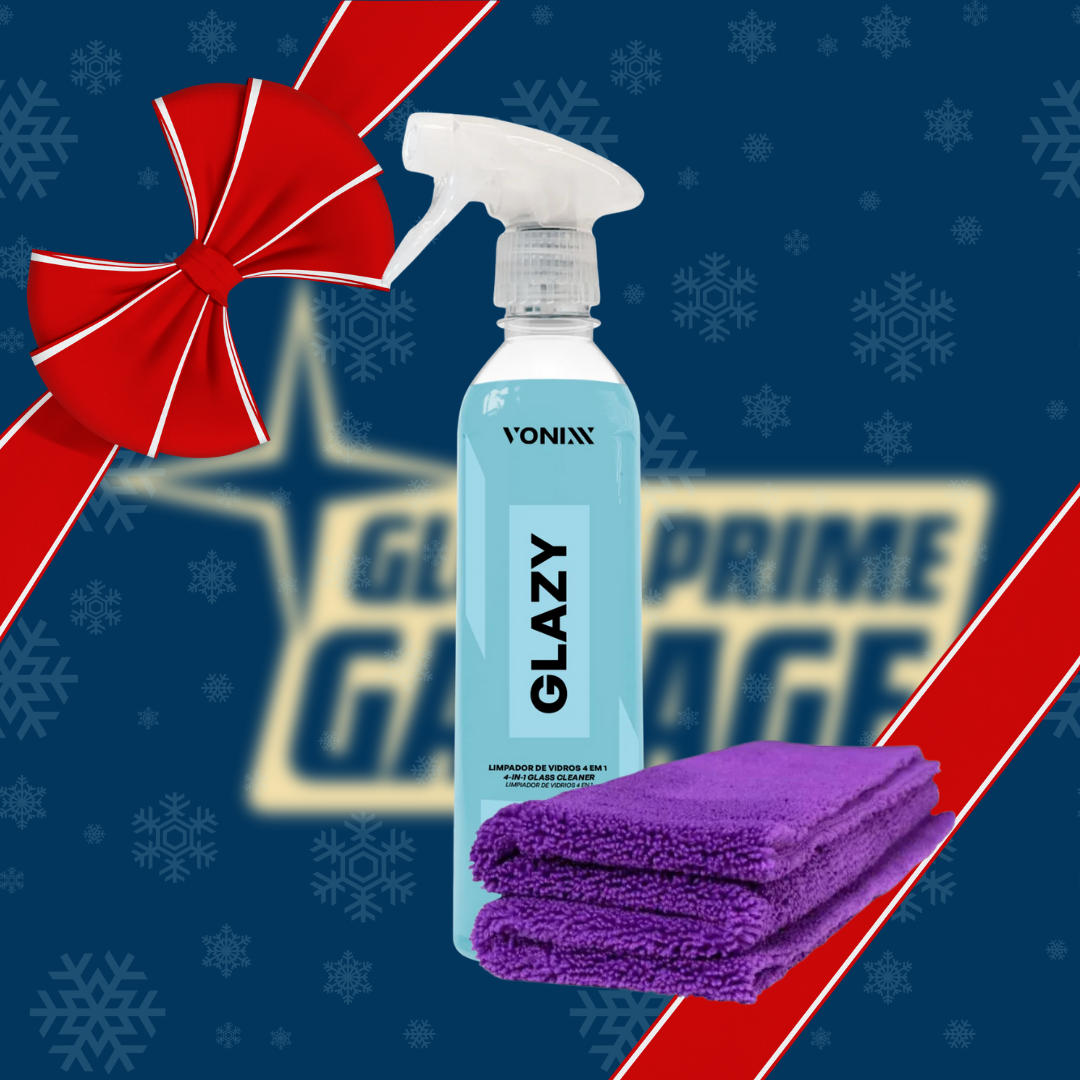 Perfeito para uso automotivo ou doméstico, o Kit Glazy + Microfibra entrega praticidade, proteção e transparência superior — padrão Glow Prime Garage.